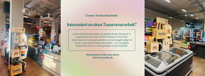 Unsere liebevoll gestalteten Produkkte finden Sie bereit in ausgewählten privaten REWE-Märkten in München.